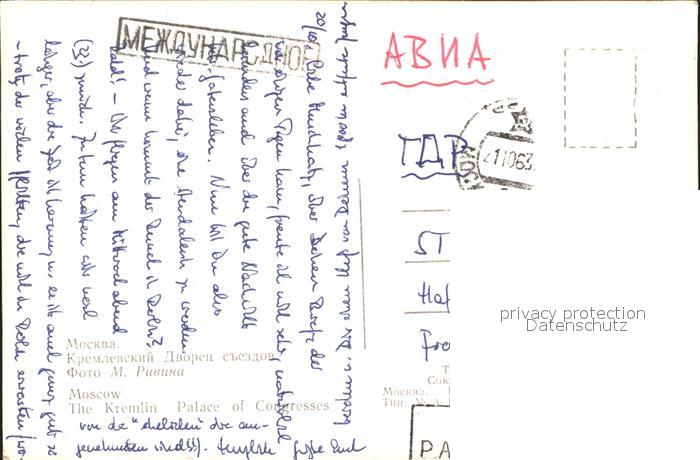 old postcard Moscow Moskva Kremlin Palace Congresses postalisch gelaufen Erhaltung siehe scans
