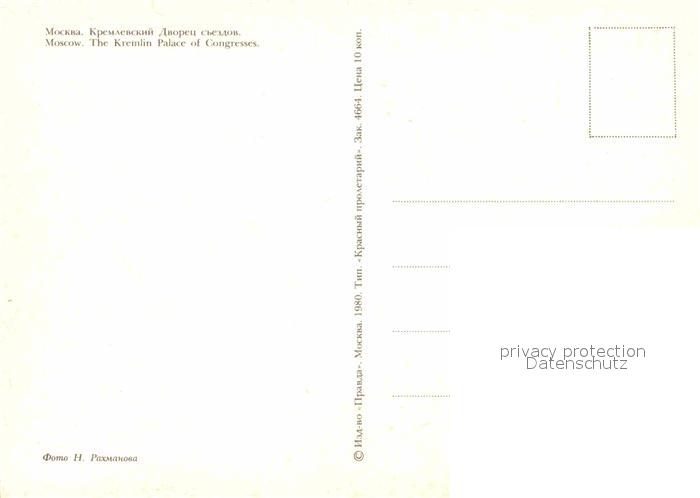 Moscow Moskva Kremlin Palace of Congresses postalisch nicht gelaufen Erhaltung siehe scans [NatalD47]