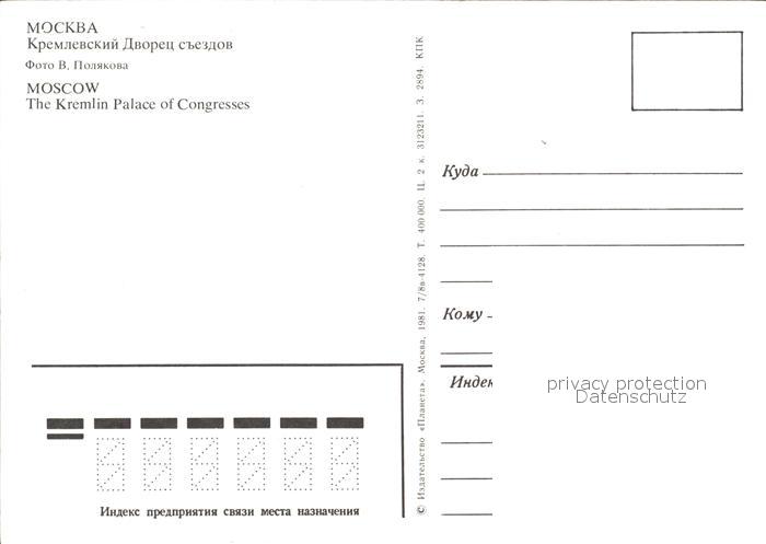 Moscow Moskva Kremlin Palace of Congresses postalisch nicht gelaufen Erhaltung siehe scans