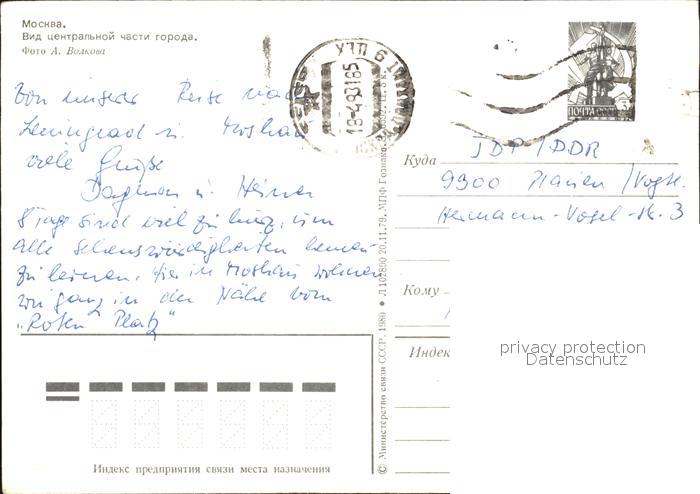 old postcard Moscow Moskva Kremlin Red Square postalisch gelaufen Ganzsache (eingedruckte Briefmarke) Erhaltung siehe scans [NatalD47]