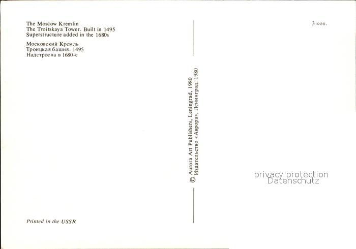 Moscow Moskva Kremlin Troitskaya Tower postalisch nicht gelaufen Erhaltung siehe scans [NatalD47]