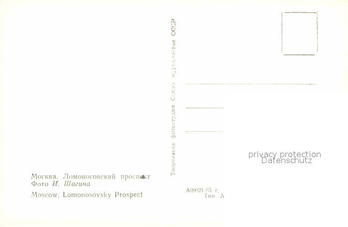 Moscow Moskva Lomonosov Prospekt postalisch nicht gelaufen Erhaltung siehe scans [NatalD47]