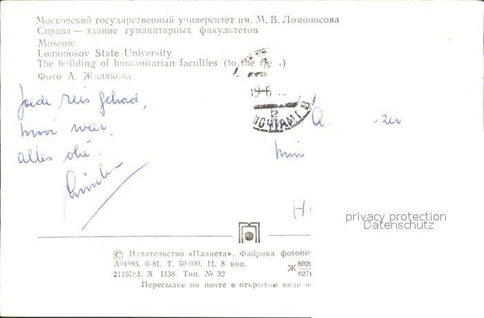 old postcard Moscow Moskva Lomonosov State University postalisch gelaufen Erhaltung siehe scans