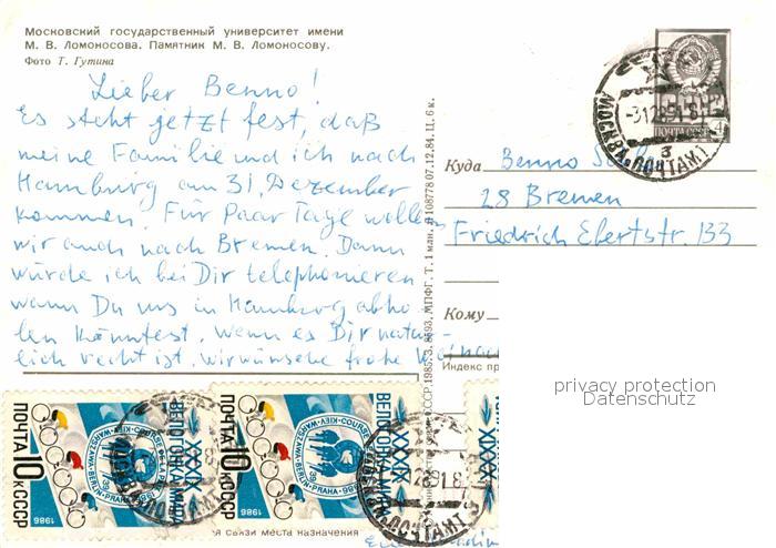 old postcard Moscow Moskva Lomonosov Universitaet postalisch gelaufen Ganzsache (eingedruckte Briefmarke) Erhaltung siehe scans [NatalD47]