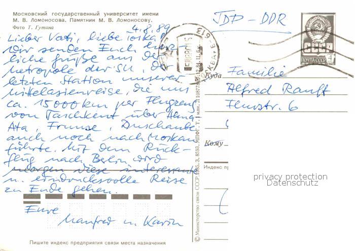 old postcard Moscow Moskva Lomonosov Universitaet postalisch gelaufen Ganzsache (eingedruckte Briefmarke) Erhaltung siehe scans [NatalD47]