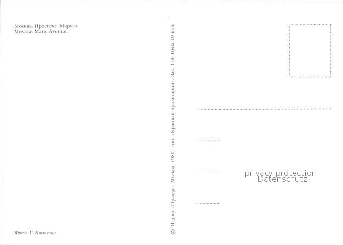 Moscow Moskva Marx Avenue postalisch nicht gelaufen Erhaltung siehe scans