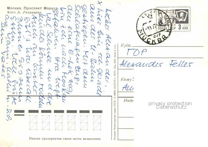 alte Postkarte Moscow Moskva Marx Prospekt postalisch gelaufen Ganzsache (eingedruckte Briefmarke) Erhaltung siehe scans [NatalD47]
