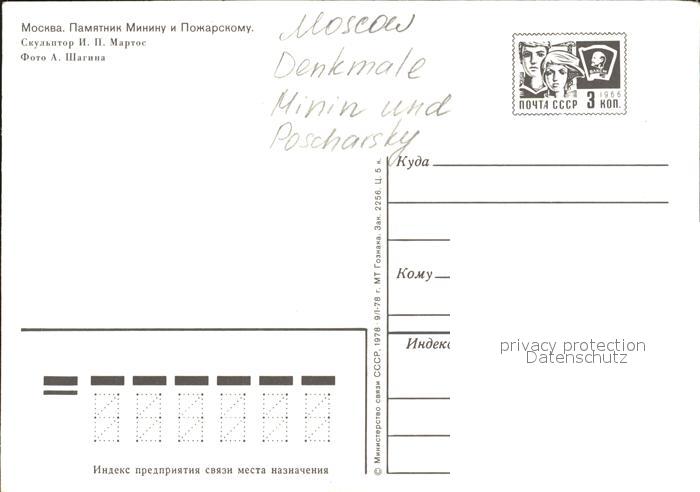 Moscow Moskva Minin Poscharsky Denkmal postalisch nicht gelaufen Ganzsache (eingedruckte Briefmarke) Erhaltung siehe scans