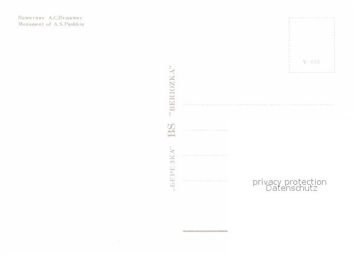 Moscow Moskva Monument of A. S. Pushkin postalisch nicht gelaufen Erhaltung siehe scans [NatalD47]