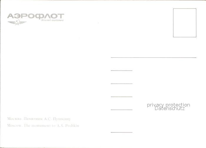 Moscow Moskva Monument Puschkin postalisch nicht gelaufen Erhaltung siehe scans