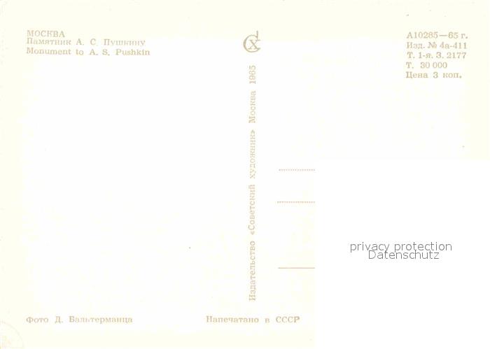 Moscow Moskva Monument to A. S. Pushkin postalisch nicht gelaufen Erhaltung siehe scans [NatalD47]
