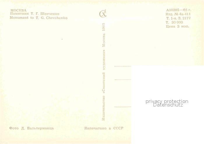 Moscow Moskva Monument to T. G. Chevchenko postalisch nicht gelaufen Erhaltung siehe scans [NatalD47]