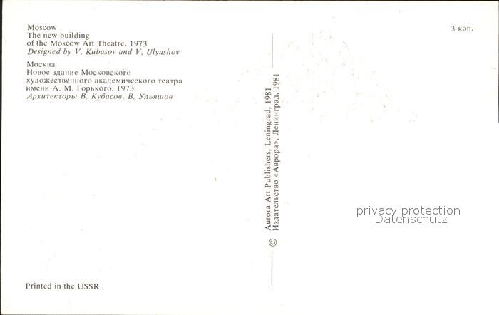 Moscow Moskva Moscow Art Theatre postalisch nicht gelaufen Erhaltung siehe scans