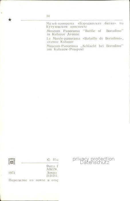 Moscow Moskva Museum-Panorama Schlacht bei Borodino Kutusow-Prospekt postalisch nicht gelaufen Keine Postkarte (siehe scan) Erhaltung siehe scans