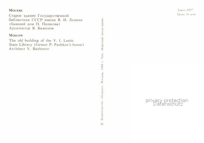 Moscow Moskva Old Building of the V. I. Lenin postalisch nicht gelaufen Erhaltung siehe scans [NatalD47]