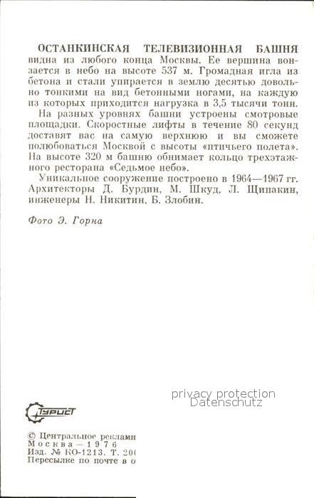 Moscow Moskva Ostankino Turm postalisch nicht gelaufen Keine Postkarte (siehe scan) Erhaltung siehe scans [NatalD47 kv013box]