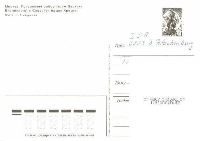 Moscow Moskva Pokrow Kathedrale Spasskiy Turm postalisch nicht gelaufen Ganzsache (eingedruckte Briefmarke) Erhaltung siehe scans [NatalD47]