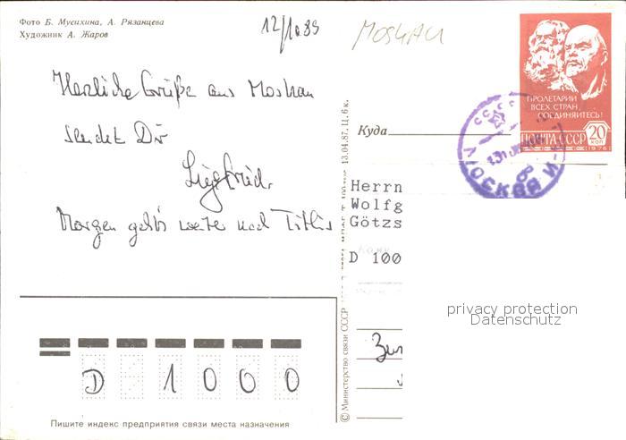 old postcard Moscow Moskva Puschkinmuseum postalisch gelaufen Erhaltung siehe scans