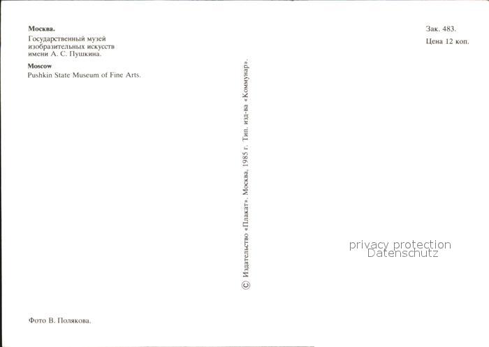 Moscow Moskva Pushkin State Museum postalisch nicht gelaufen Erhaltung siehe scans [NatalD47 kv013box]