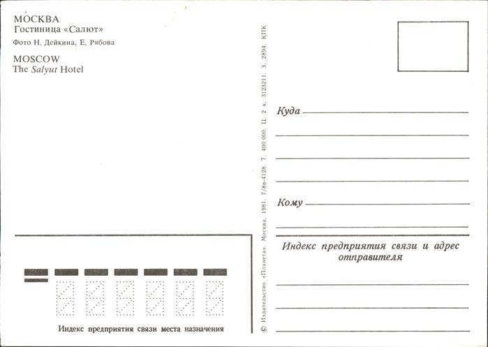 Moscow Moskva Salyut Hotel postalisch nicht gelaufen Erhaltung siehe scans