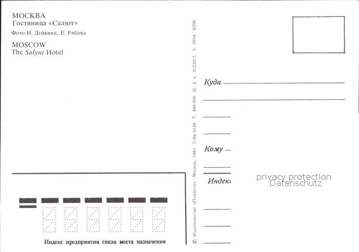 Moscow Moskva Salyut Hotel Skyscraper postalisch nicht gelaufen Erhaltung siehe scans