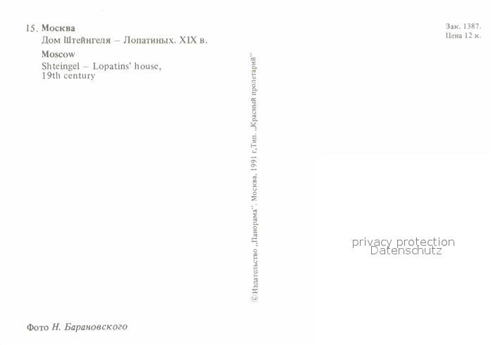 Moscow Moskva Shteingel Lopatins house postalisch nicht gelaufen Erhaltung siehe scans [NatalD47]
