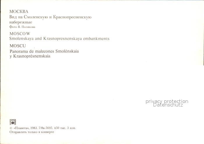 Moscow Moskva Smolenskaya Krasnopresnenskaya Promenade postalisch nicht gelaufen Keine Postkarte (siehe scan) Erhaltung siehe scans [NatalD47]