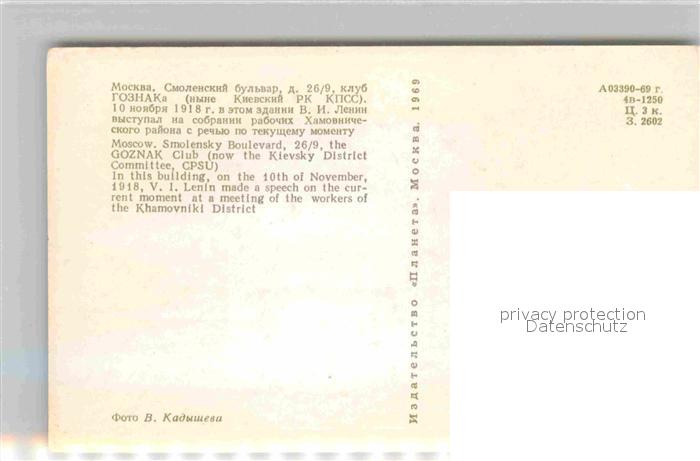 Moscow Moskva Smolensky Boulevard Goznak Club postalisch nicht gelaufen Erhaltung siehe scans [NatalD47]