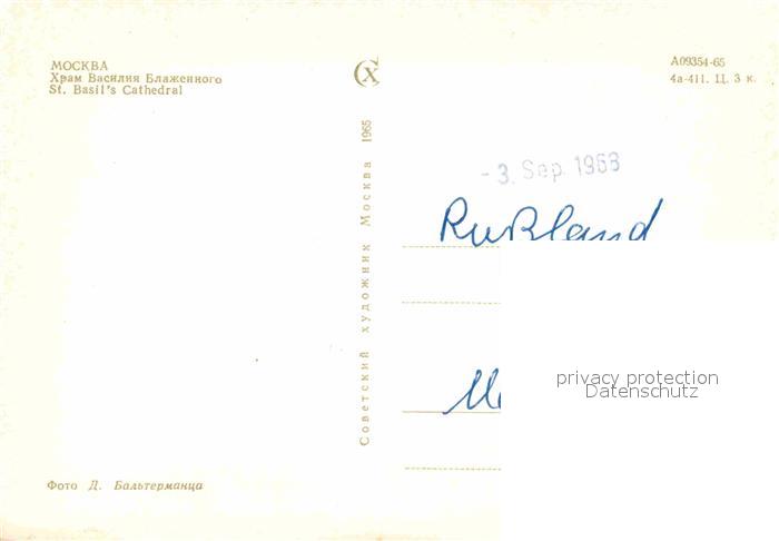 Moscow Moskva St. Basils Cathdral postalisch nicht gelaufen Erhaltung siehe scans [NatalD47]