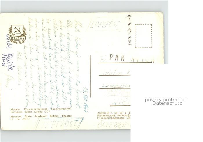 old postcard Moscow Moskva State Academie Bolshof Theatre postalisch gelaufen Erhaltung siehe scans