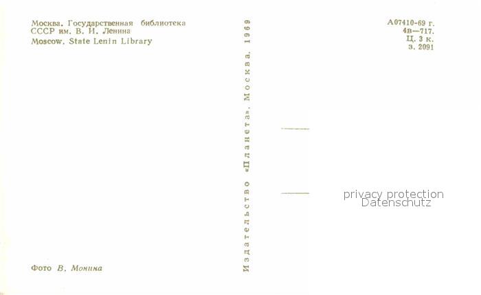 Moscow Moskva State Lenin Library postalisch nicht gelaufen Erhaltung siehe scans [NatalD47]