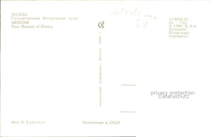 Moscow Moskva State Museum of History postalisch nicht gelaufen Erhaltung siehe scans [NatalD47]
