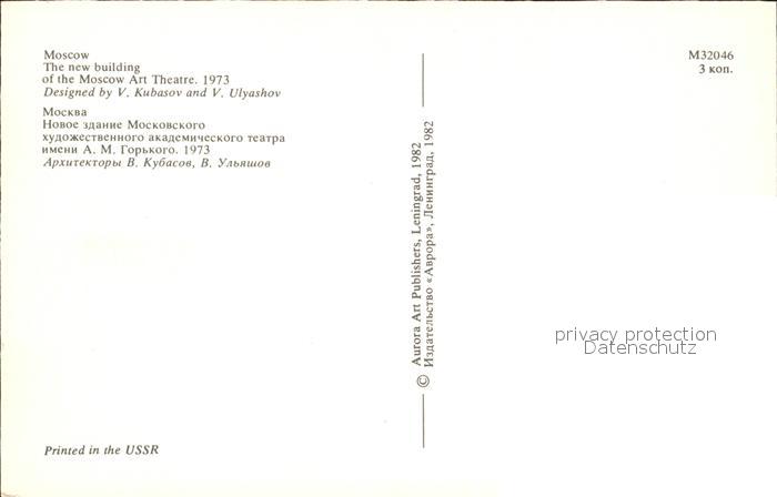 Moscow Moskva The new building of the Moscow Art Theatre postalisch nicht gelaufen Erhaltung siehe scans