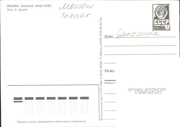 Moscow Moskva Theater postalisch nicht gelaufen Ganzsache (eingedruckte Briefmarke) Erhaltung siehe scans