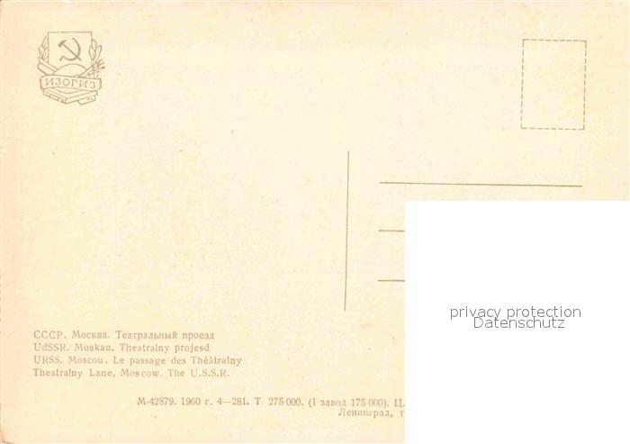 Moscow Moskva Theater Projesd postalisch nicht gelaufen Erhaltung siehe scans [NatalD47]
