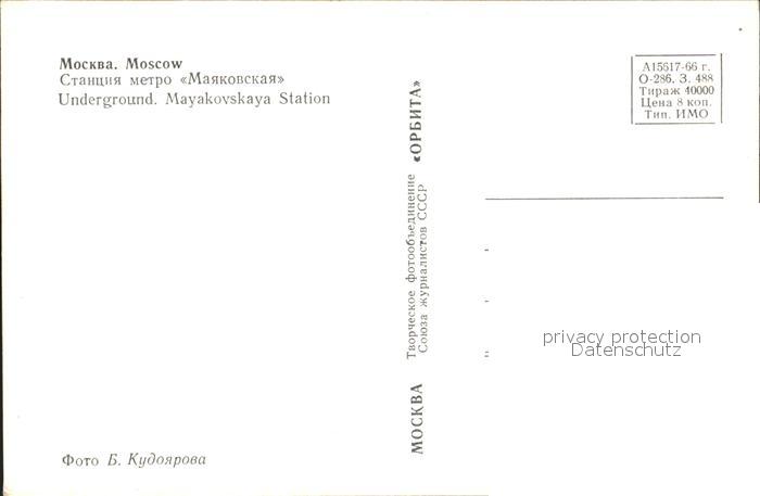 Moscow Moskva Underground Mayakovskaya Station postalisch nicht gelaufen Erhaltung siehe scans
