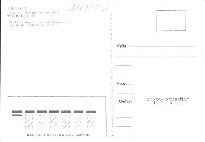 Moscow Moskva UssR Exhibition of Economic Achievements Electrification in the UssR Pavilion postalisch nicht gelaufen Erhaltung siehe scans