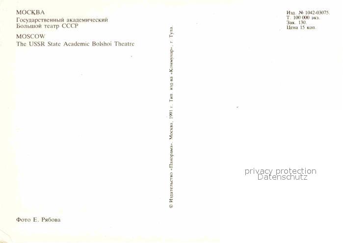 Moscow Moskva UssR State Academic Bolshoi Theatre postalisch nicht gelaufen Erhaltung siehe scans [NatalD47]