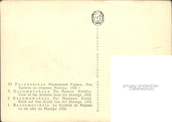 Moscow Moskva View of the Kremlin from the Manege postalisch nicht gelaufen Erhaltung siehe scans