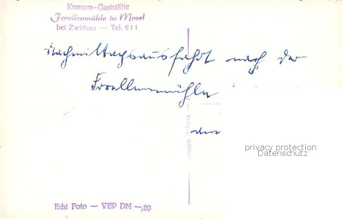 73833206 Mosel Zwickau Konsum Gaststaette Forellenmuehle Gastraeume postalisch nicht gelaufen Erhaltung siehe scans [WerneD78] KatCode: 11110014167000
