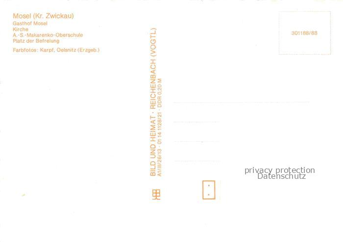 74152365 Mosel ZWICKAU Sachsen Gasthof Mosel Kirche Oberschule Platz der Befreiung postalisch nicht gelaufen Erhaltung siehe scans [FriedD77] KatCode: 11110014167000