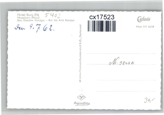 30725379 Moselkern Hotel Burg Eltz postalisch nicht gelaufen KatCode: 11110007135065