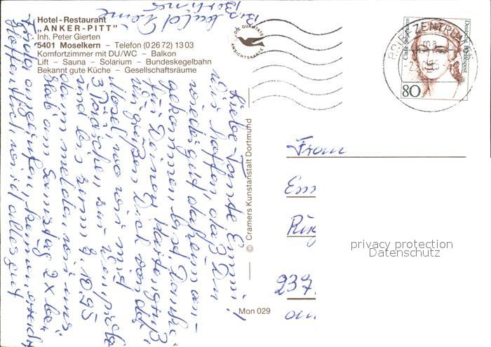 72238368 alte Postkarte Moselkern Hotel Restaurant Anker-Pitt postalisch gelaufen Erhaltung siehe scans KatCode: 11110007135065