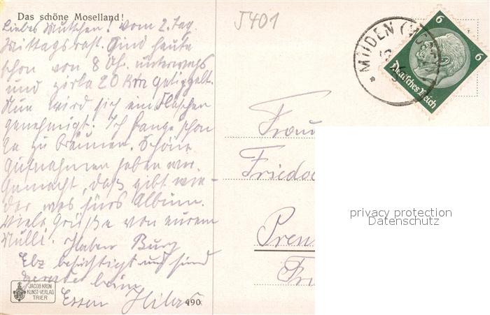 73559241 alte Postkarte Moselkern Moselpartie postalisch gelaufen Erhaltung siehe scans [LiesaD40] KatCode: 11110007135065