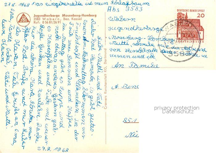 73040937 alte Postkarte Mosenberg Homberg Jugendherberge postalisch gelaufen Erhaltung siehe scans [FriedD77] KatCode: 11110006634009