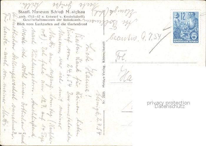 72314983 alte Postkarte Mosigkau Staatliches Museum Lustgarten postalisch gelaufen Erhaltung siehe scans KatCode: 11110015001000