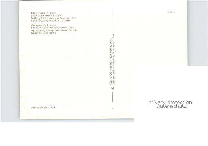 Moskau Moscou Arsenal Tower postalisch nicht gelaufen Erhaltung siehe scans [AndreD76]