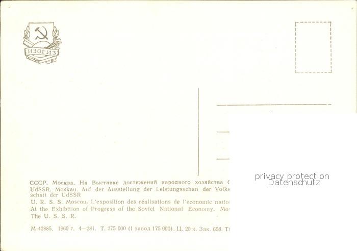 Moskau Moscou Ausstellung Leistungsschau Volkswirtschaft postalisch nicht gelaufen Erhaltung siehe scans