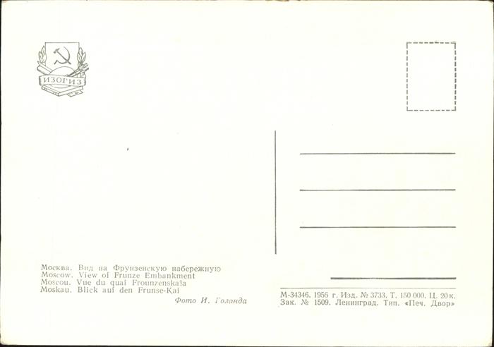 Moskau Moscou Blick auf den Frunse Kai postalisch nicht gelaufen gute Erhaltung