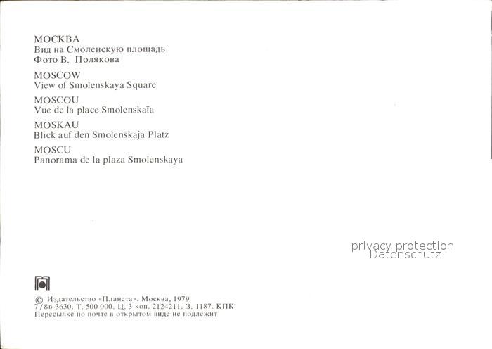 Moskau Moscou Blick auf den Smolenskaja Platz postalisch nicht gelaufen Erhaltung siehe scans